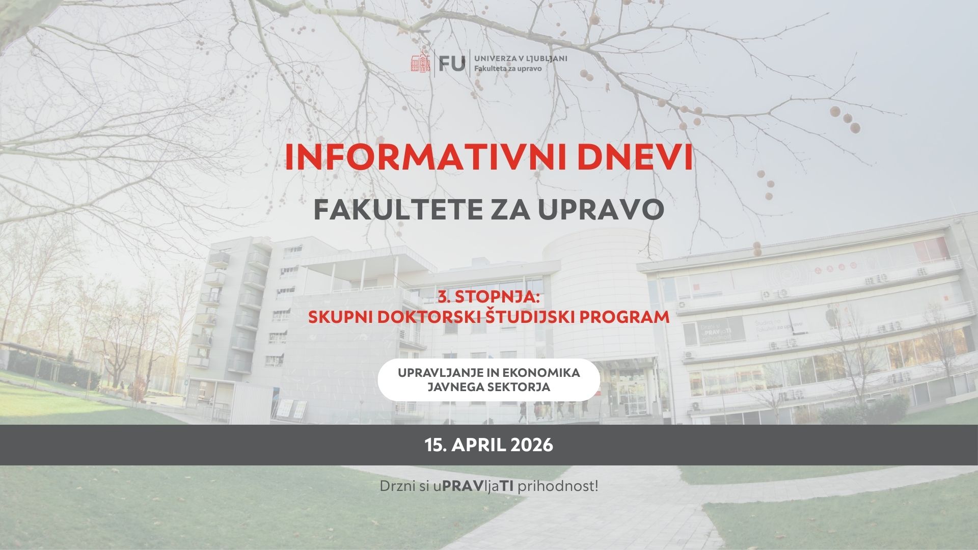 Vabimo vas, da se nam v sredo, 15. aprila 2026, ob 17. uri pridružite na spletnem informativnem dnevu za doktorski študij tretje stopnje, ki bo potekal preko Zooma.