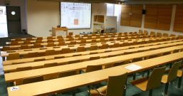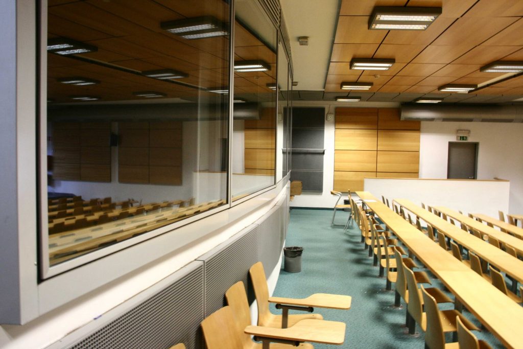 Zaradi naklona in velikega platna je mogoče spremljati vsebino neglede na to, kje obiskovalec sedi. Predavalnica je opremljena s prevajalskimi kabinami.