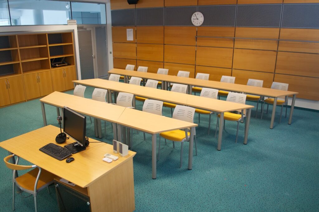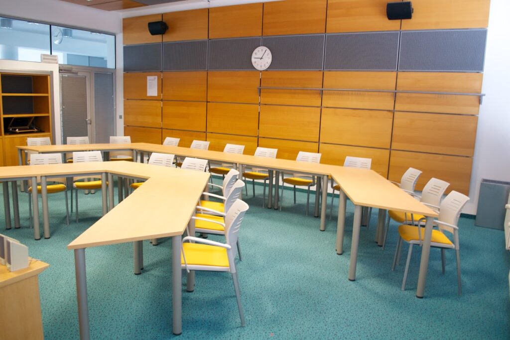 Predavalnica P17 je predavalnica s premičnimi stoli in mizami, ki jih lahko povsem poljubno prilagajamo potrebam vašega dogodka.