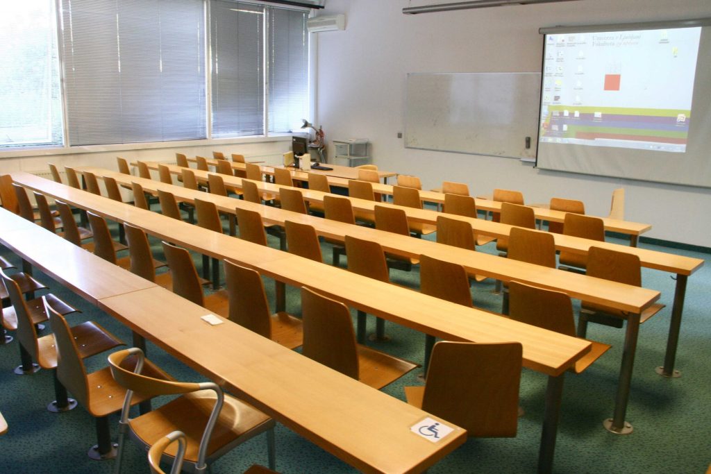 Predavalnica P2 je standardna predavalnica na Fakulteti za upravo. Primerna je za predavanja za srednje velike skupine, tudi za manjše razprave in okrogle mize.