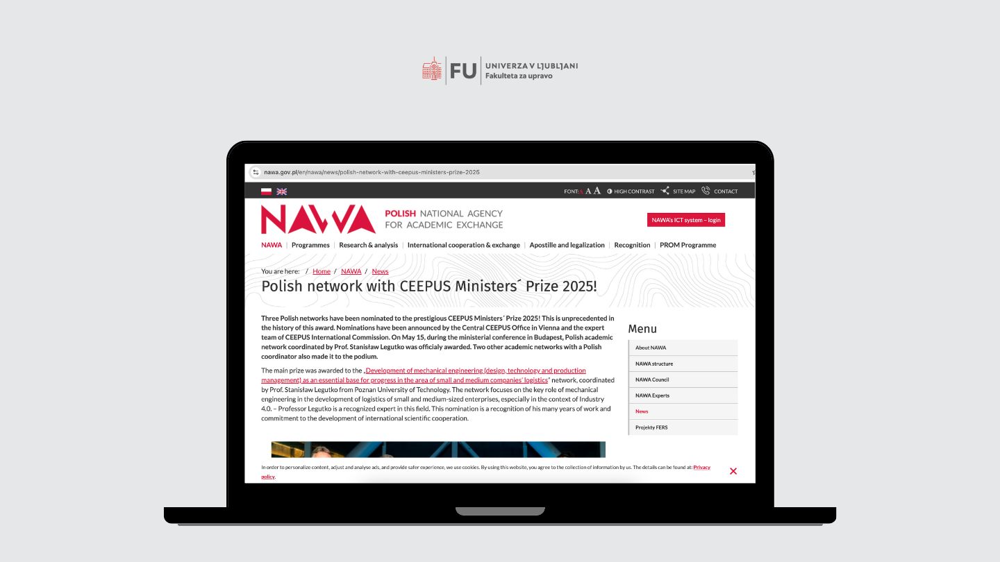 CEEPUS mreža Border and Regional Studies Network, v katero je vključena tudi naša fakulteta, je na zasedanju skupnega ministrskega zbora CEEPUS v Budimpešti zasedla 2. mesto v okviru nominacije za prestižno CEEPUS ministrsko nagrado za leto 2025. Več informacij o letošnjih nagrajencih si lahko preberete TUKAJ.